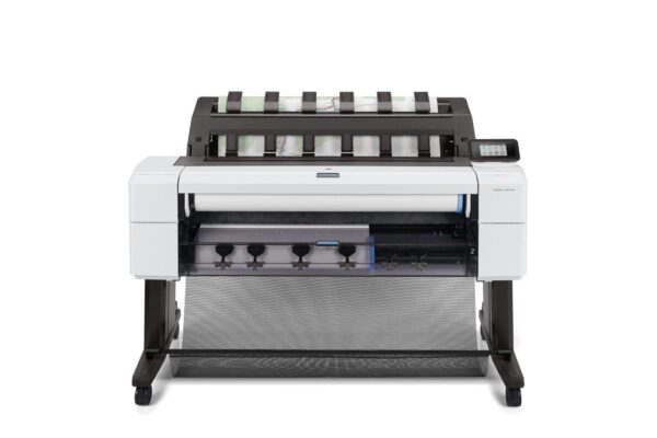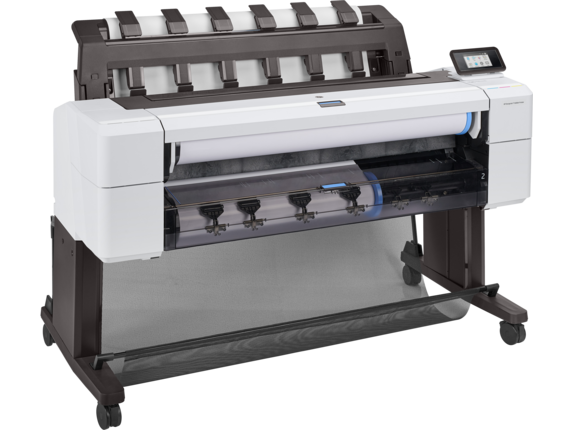 Impresora HP DesignJet T1600, soporte de impresora y contenedor de medios, ejes (x2), cabezales de impresión, cartuchos de tinta iniciales, guía del usuario, cables de alimentación