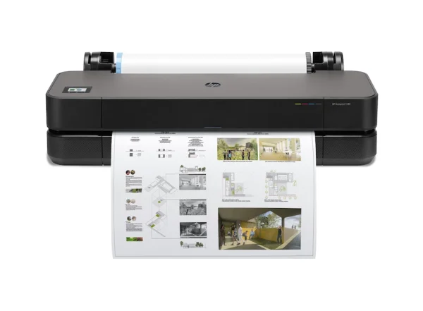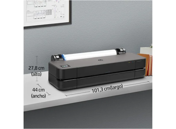 Impresora HP DesignJet T230 de 24 pulgadas, cabezal de impresión, cartuchos de tinta de inicio, eje, guía de referencia rápida, póster de instalación, cable de alimentación