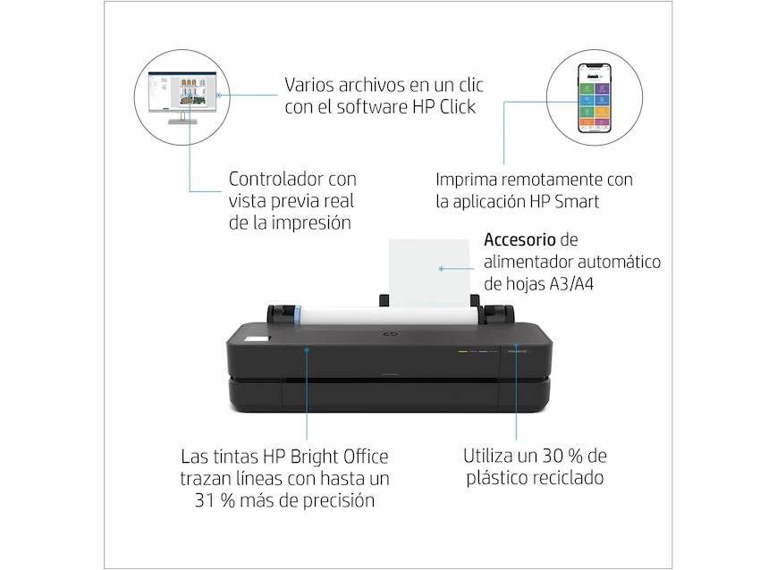Imprima desde cualquier parte con la aplicación HP Smart, HP Click, controlador HP para macOS, controlador HP para Windows, soporte de impresión para Chrome OS, impresión de correo electrónico, complemento para servicio de impresión HP para Android, Apple AirPrint