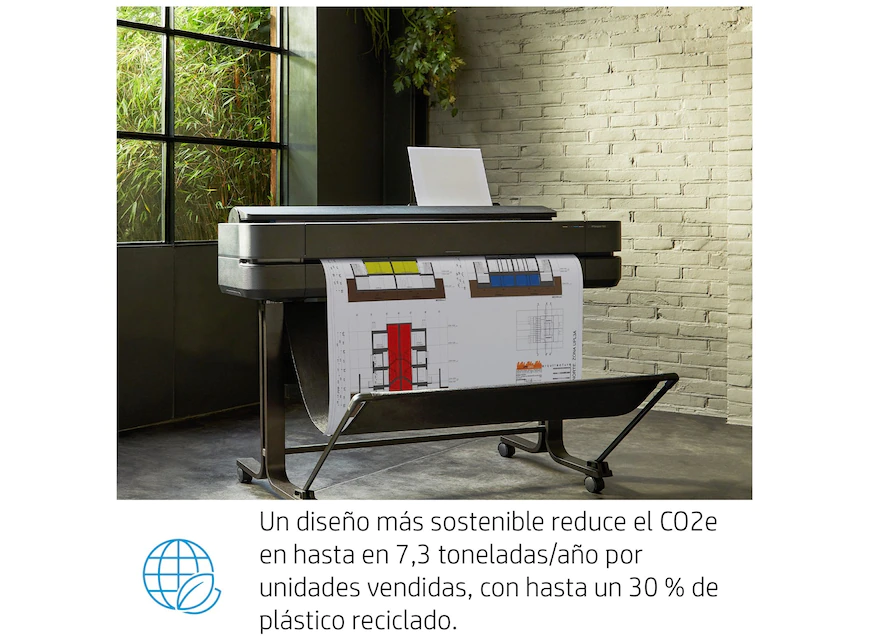 Ahorre espacio con los plotters más pequeños del mundo, con base integrada, diseñados para adaptarse a su oficina. Utilice hasta un 95% menos de tinta durante el mantenimiento de rutina en comparación con el resto de la competencia y consiga hasta 100 páginas A1 extra al mes. Un diseño más sostenible, que reduce hasta 7,3 toneladas de CO2e al año por unidades vendidas, con hasta un 30% de plástico reciclado.